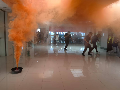 活动现场,75名来自各分会、应急小队及合作企业的参演人员先后参与了多个实战化演练项目,有安全培训、办公楼灭火疏散逃生急救演练、查找身边隐患竞赛、逃生屋现场体验、心肺复苏培训、电动车灭火实操、灭火毯灭火等环节。